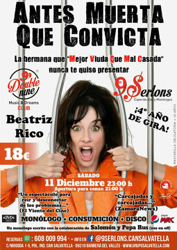 Carolina se ha librado por poco de la cárcel y ha decidido hacerse famosa cueste lo que cueste. Mientras su marido, un empresario de éxito, está en chirona aprovecha para cumplir su sueño demostrando al público su valía para participar en el concurso que la llevará a la fama. ¿Lo conseguirá? Beatriz Rico protagoniza un trepidante monólogo creado a base de gags, imitaciones y chistes, mientras nos ofrece reflexiones disparatadas sobre su vida en pareja o su peculiar punto de vista sobre la crisis.